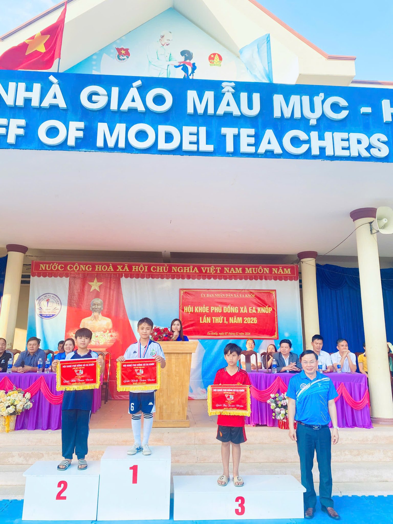 Xin chúc mừng thầy và trò nhà trường! Cảm ơn sự quan tâm, chỉ đạo của lãnh đạo các cấp, sự phối hợp của các ban ngành, đoàn thể và sự đồng hành của quý phụ huynh đã góp phần vào thành công của Hội khỏe Phù Đổng năm nay.