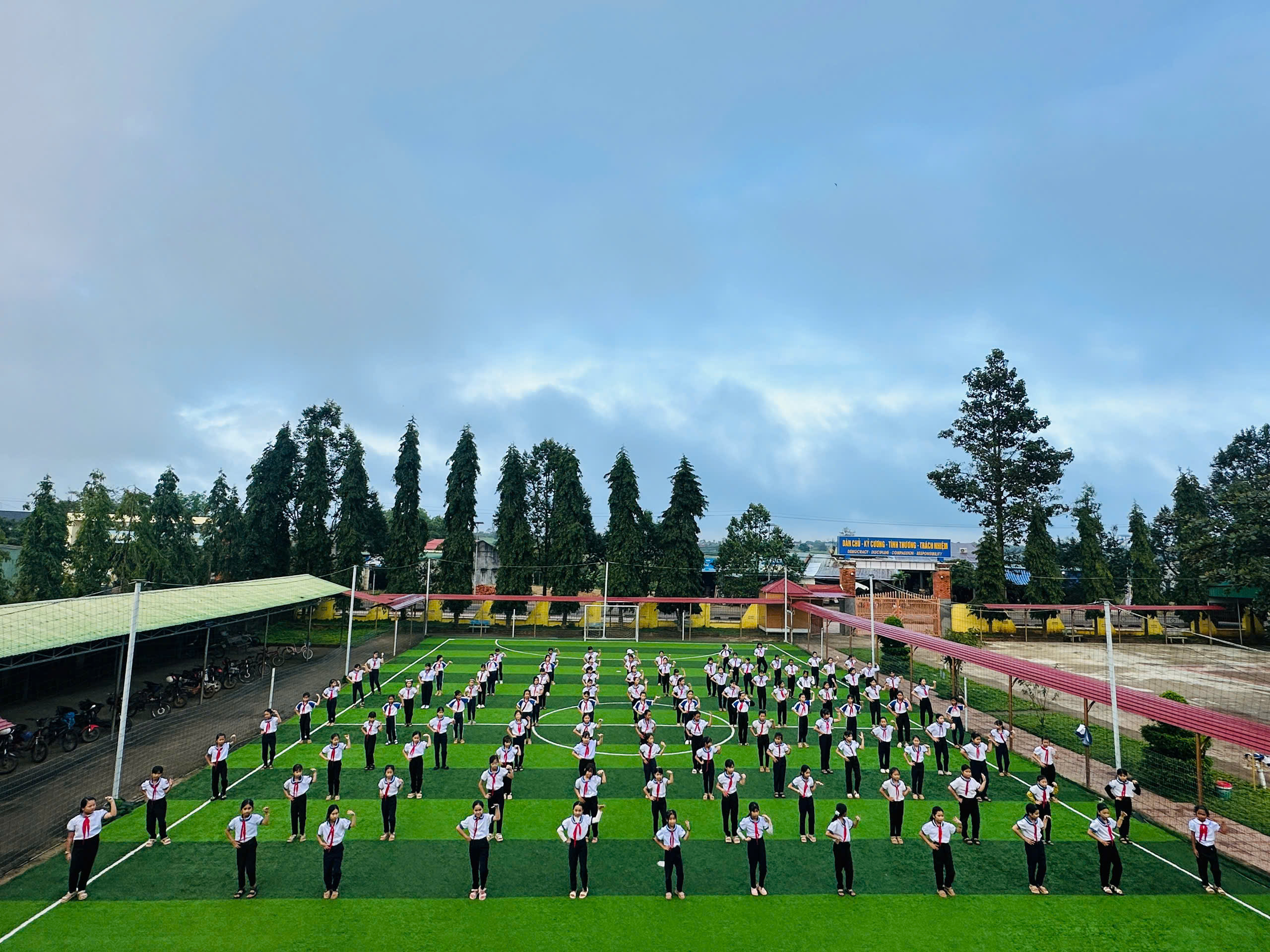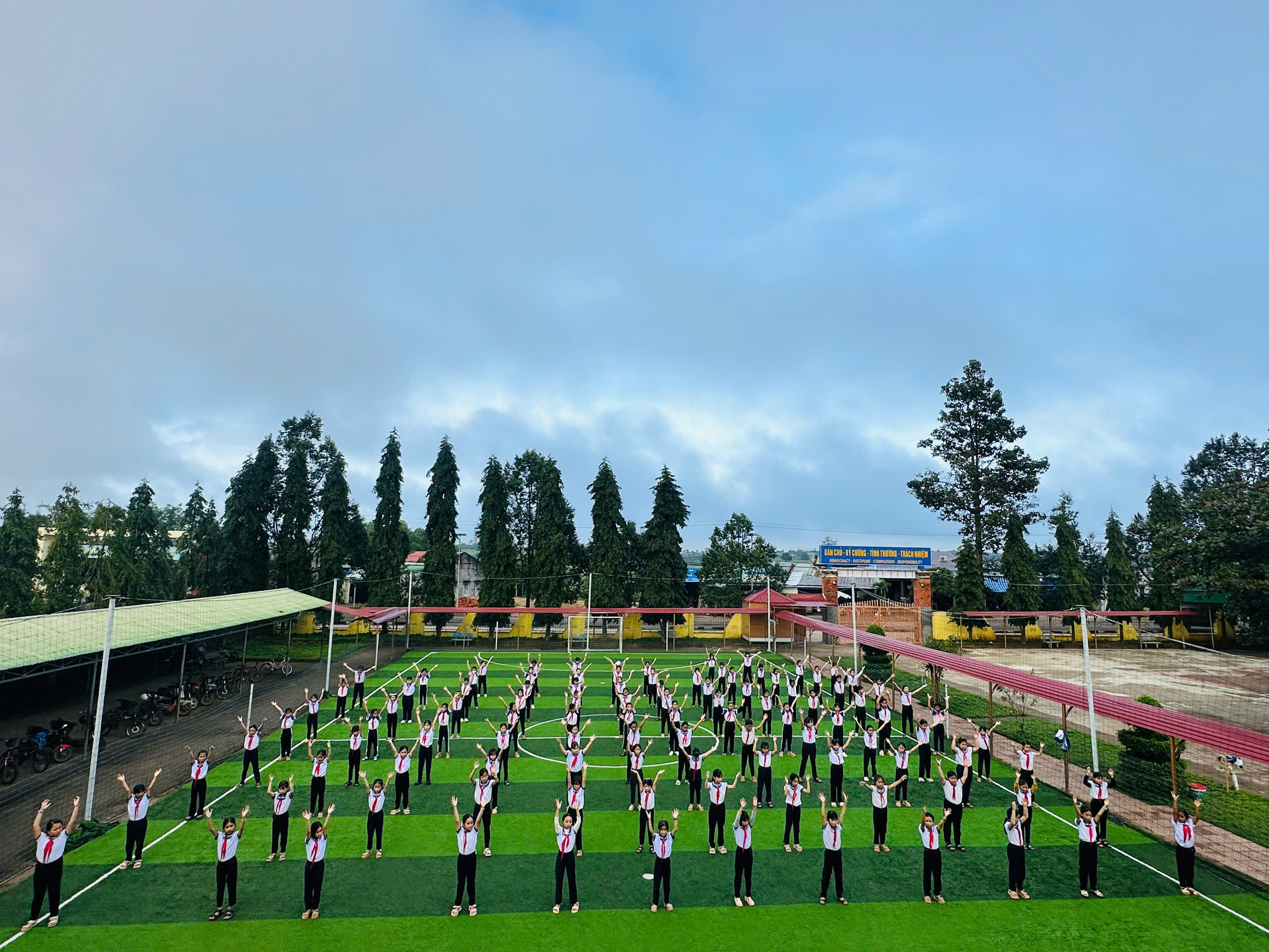 Hoạt động diễn ra trong không khí sôi nổi, hào hứng; các em đội viên, nhi đồng thể hiện những động tác khỏe khoắn, đều đẹp, thể hiện rõ tinh thần đoàn kết, tự tin và năng động của thiếu nhi nhà trường. Qua đó, góp phần rèn luyện thể chất, xây dựng môi trường học đường vui tươi, lành mạnh, đồng thời lan tỏa tinh thần tích cực trong học tập và rèn luyện.